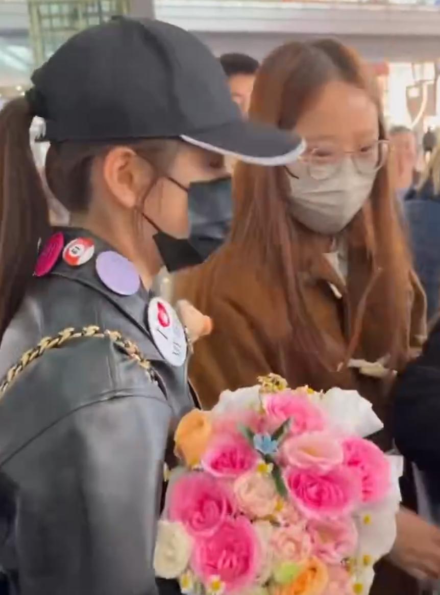 夢姐一落地就有接機的粉絲爲她送上鮮花,陳夢還朝着球迷說了一句:耶,還有鮮花啊, 謝謝。