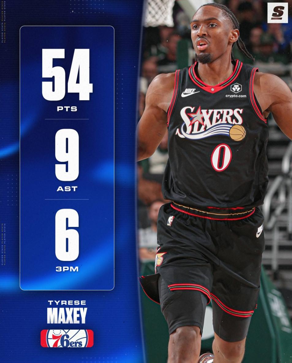 費城123-114擊敗雄鹿,這場比賽雄鹿在沒有揚尼斯的情況下與費城鏖戰一個加時賽,但關鍵時刻缺少超巨還是讓密爾沃基人在主場吞下失利,馬克西迎來生涯之夜狂攬54分。