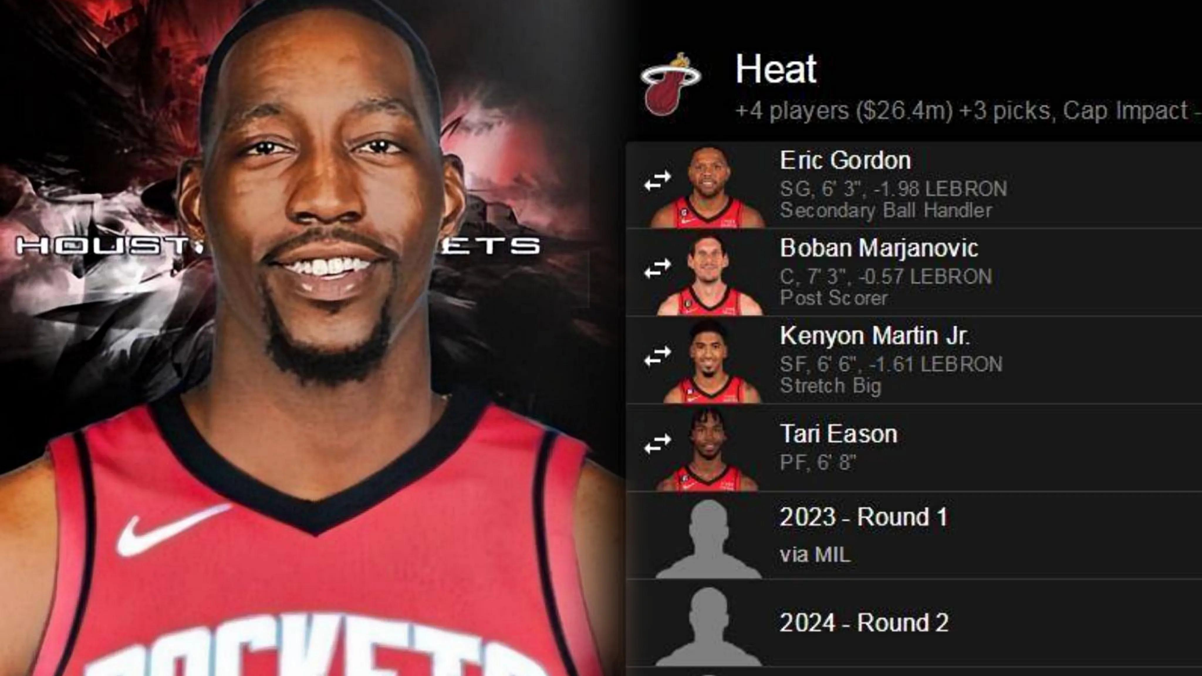 據美媒的消息,火箭有意交易得到熱火隊先發中鋒阿德巴約,並提出了一份7換1的交易報價,具體籌碼爲:戈登、伊森、小馬丁+博班+3個首輪籤。