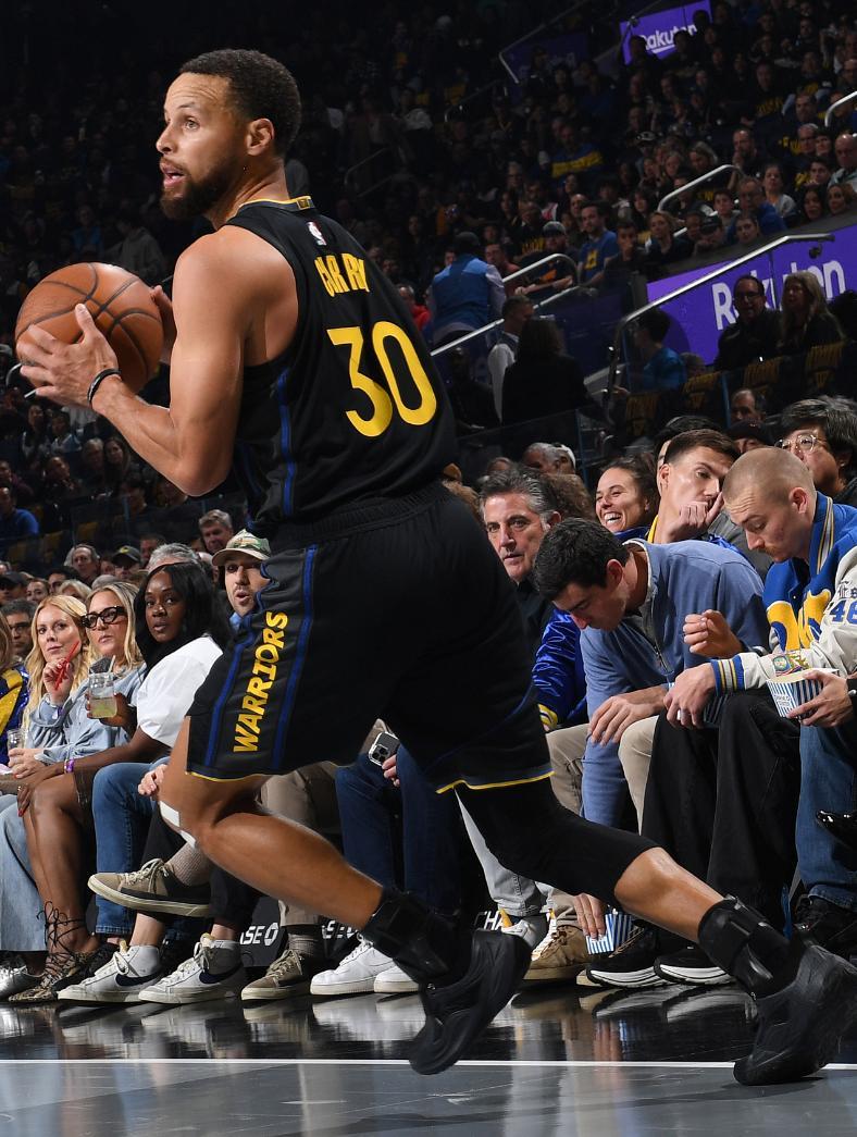 全場比賽,庫裏34分鐘,21中14,三分15中9,罰球1中1,拿到38分4助攻2籃板,命中率66.7%,三分命中率60%,庫裏生涯第48次單場9+三分繼續刷新歷史第一紀錄。