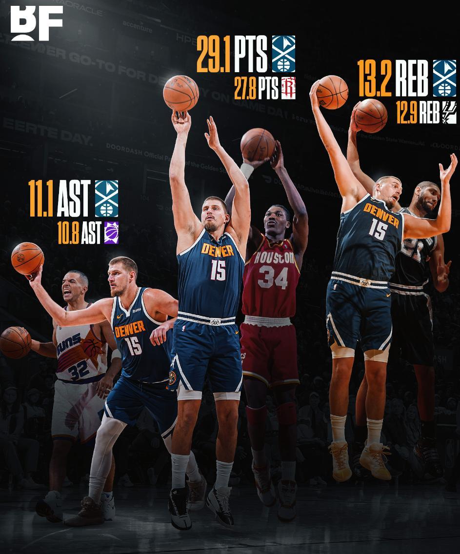第三節開場約基奇就暴走了,三分鐘裏3中3連拿9分打停火箭,這一節就是約基奇一人大戰火箭全隊,單節約基奇7中6,三分2中2,罰球4中4,拿到18分2助攻1籃板1蓋帽,三節打完28分9籃板6助攻2搶斷1蓋帽,還是那句話約老師太厲害了。