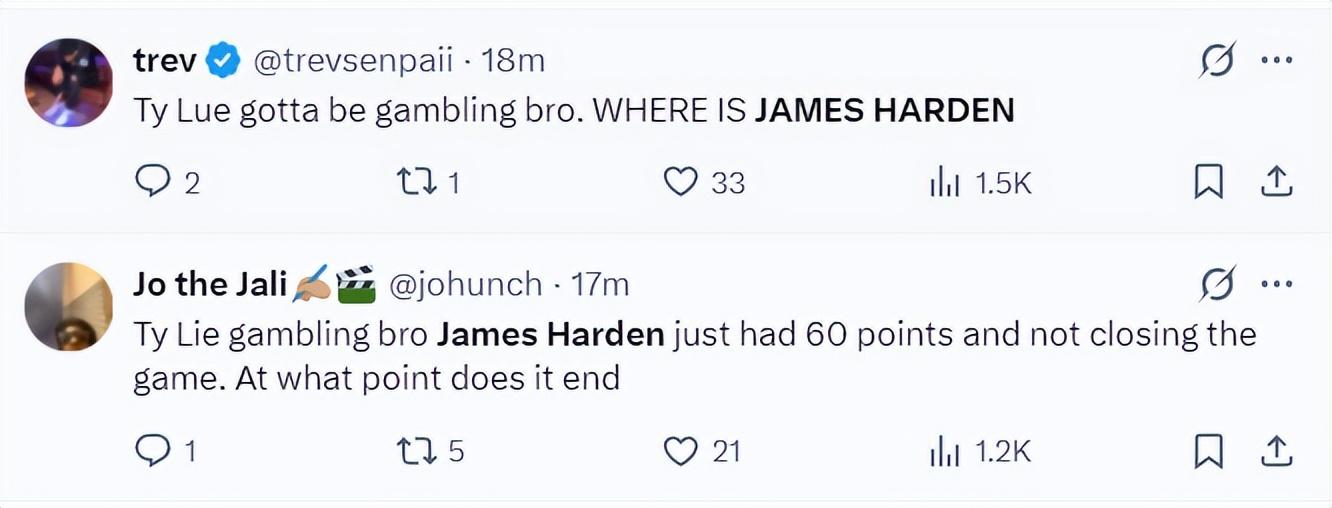 3.泰-盧肯定是在賭博啊。詹姆斯-哈登去哪兒了?
