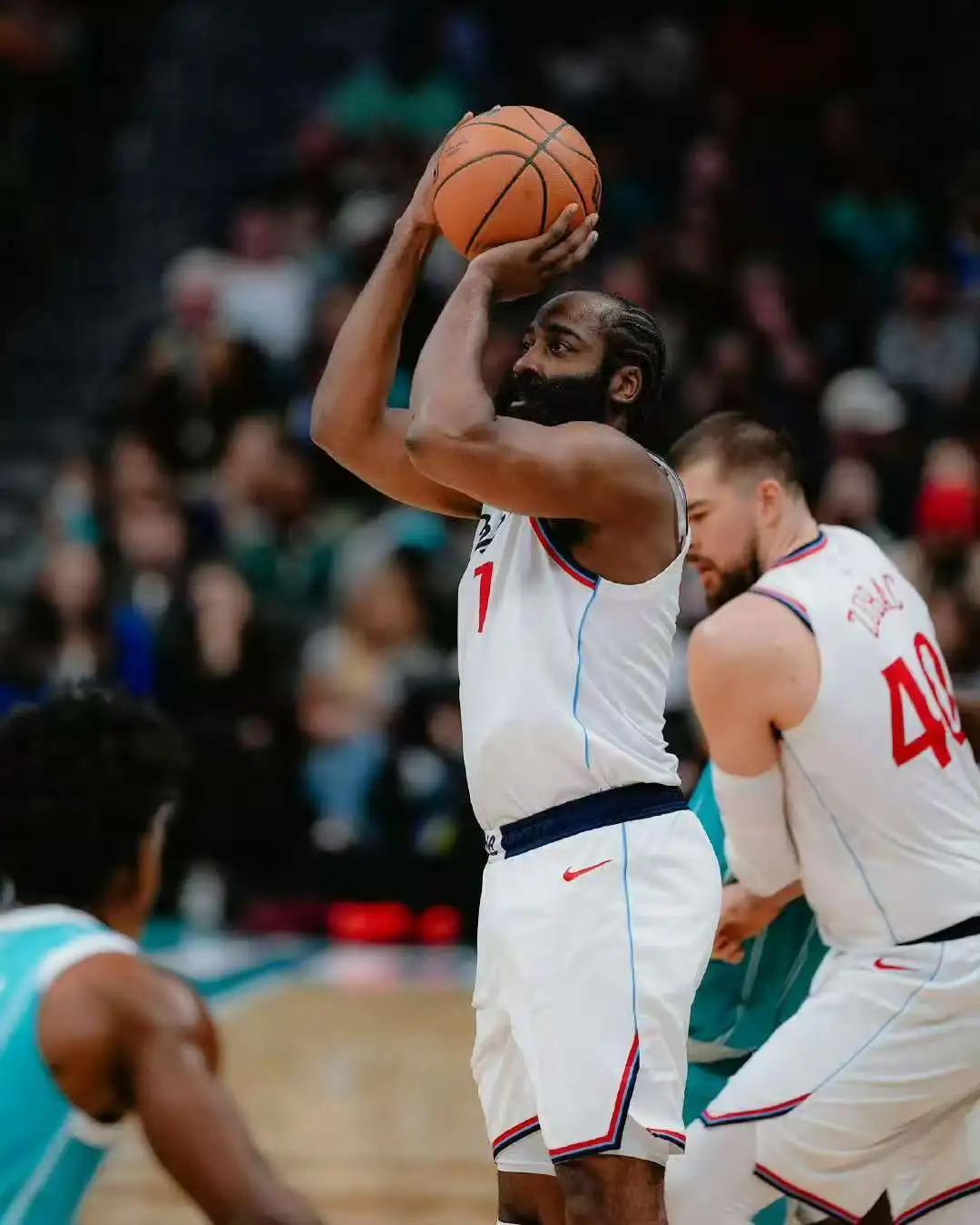 哈登,首節27分全場55+7+10記三分,創快船隊史單場得分紀錄。