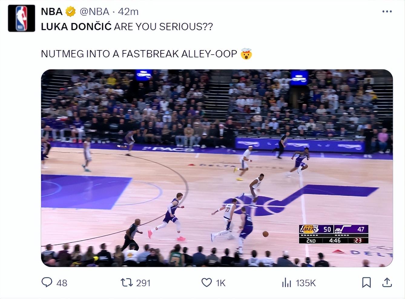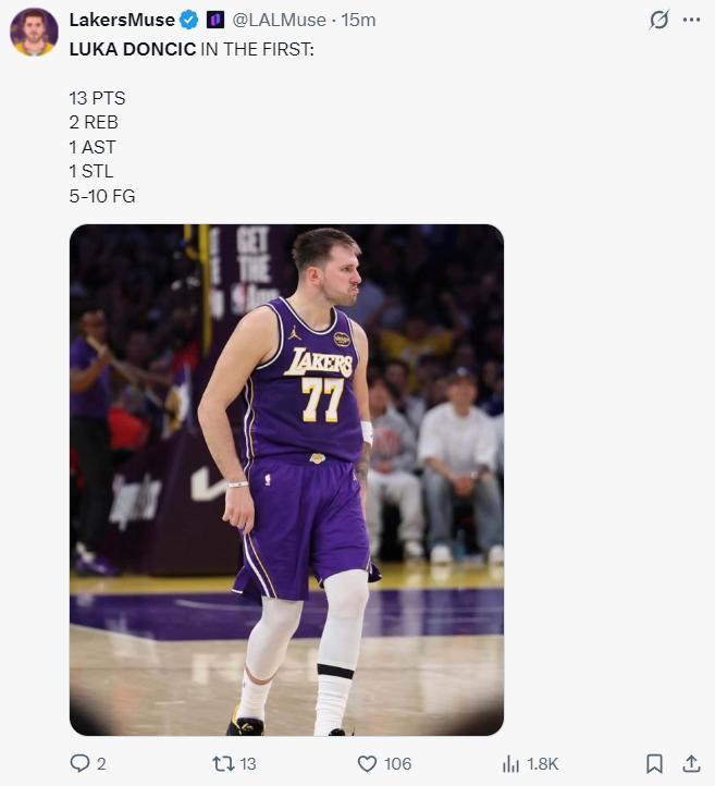東契奇首節就進入了進攻模式,打滿12分鐘,10中5,三分5中1,拿到13分2籃板1助攻1搶斷,他與裏夫斯兩人首節的進攻表現很出色,湖人也壓制爵士。東契奇背運過人2+1後還怒吼超級霸氣。