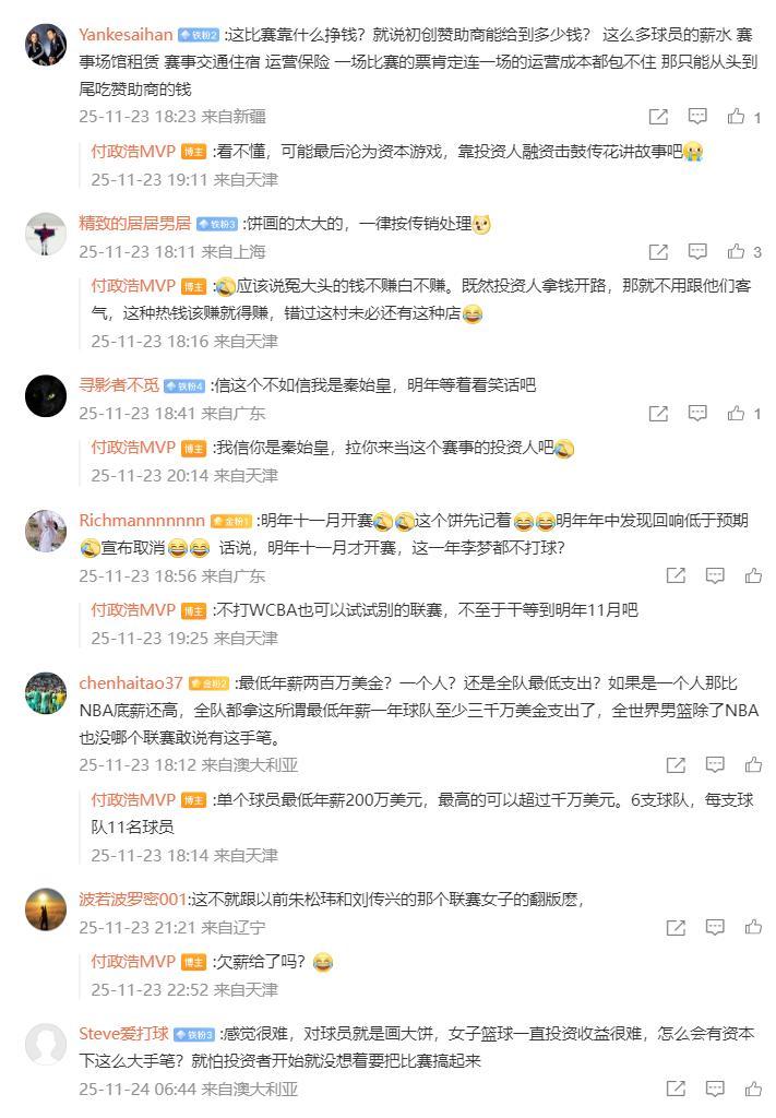 不少球迷在評論區紛紛發表看法,1.最低年薪200萬美元,全隊的話超過千萬美元,比WNBA都要高出許多,這可能嗎?