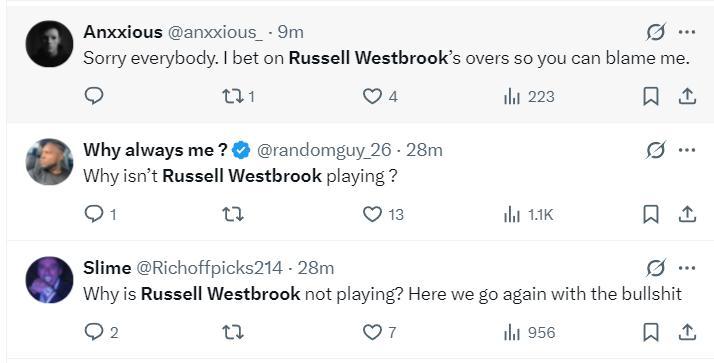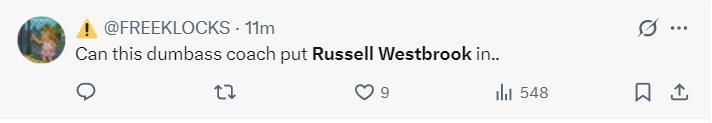 雖然威少上半場的表現很差,但很多球迷還是對克里斯蒂的安排不滿,他們認爲應該更多讓威少登場找狀態,當37歲的老將狀態不佳時更應該給他時間去找狀態。