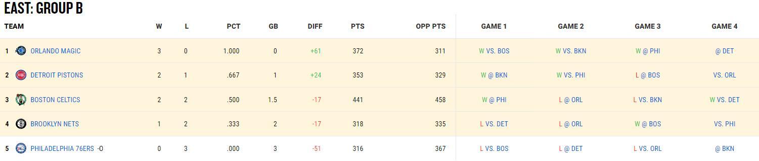 魔術隊在盃賽上已經三連勝,活塞此前是二連勝,這場比賽後變爲2勝1負,活塞已經錯失了直通的主動權,加上衝擊隊史最長的14連勝失敗,太可惜了,因爲此役真的只差一點。