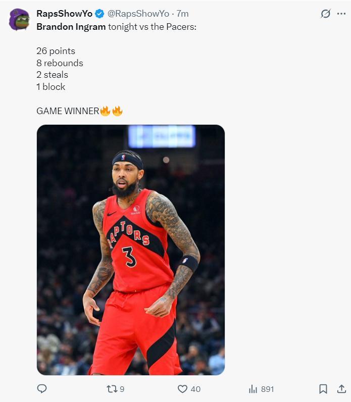 北京時間11月27日,NBA盃賽,猛龍VS步行者,這場比賽最後時刻兩隊95-95,猛龍核心布蘭登-英格拉姆持球面對西亞卡姆,他的一個急停晃掉了西卡的身位,英格拉姆中投冷血命中,只給步行者留下0.6秒,準絕殺成功!猛龍97-95險勝步行者豪取9連勝,也是盃賽的4連勝。