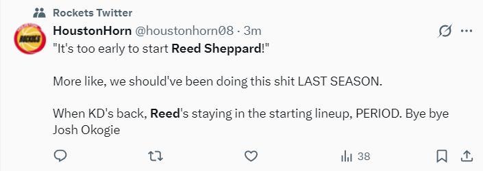 休媒表示現在爲謝潑德歡呼還爲時尚早,實際上謝潑德應該在上賽季就做出這些事情,等杜蘭特復出後謝潑德應該坐穩先發,讓奧科吉重返替補席。