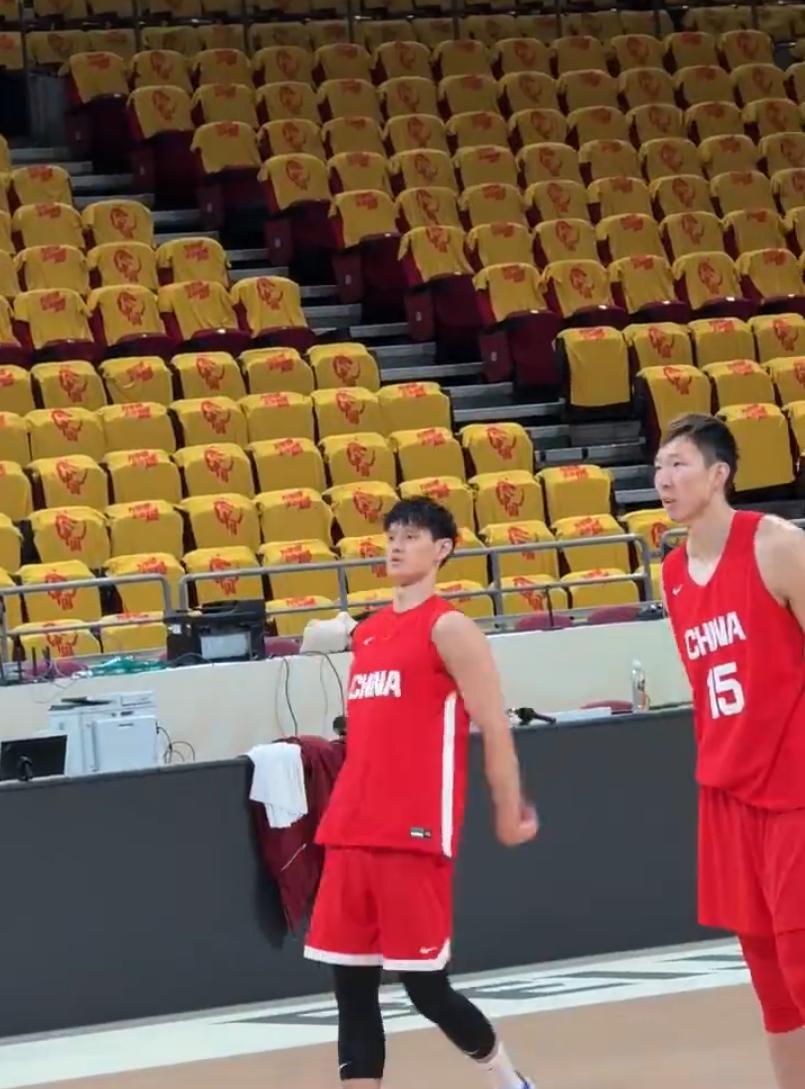 比賽前的踩場訓練可以看到五棵松體育館觀衆席全部換上了應援服。