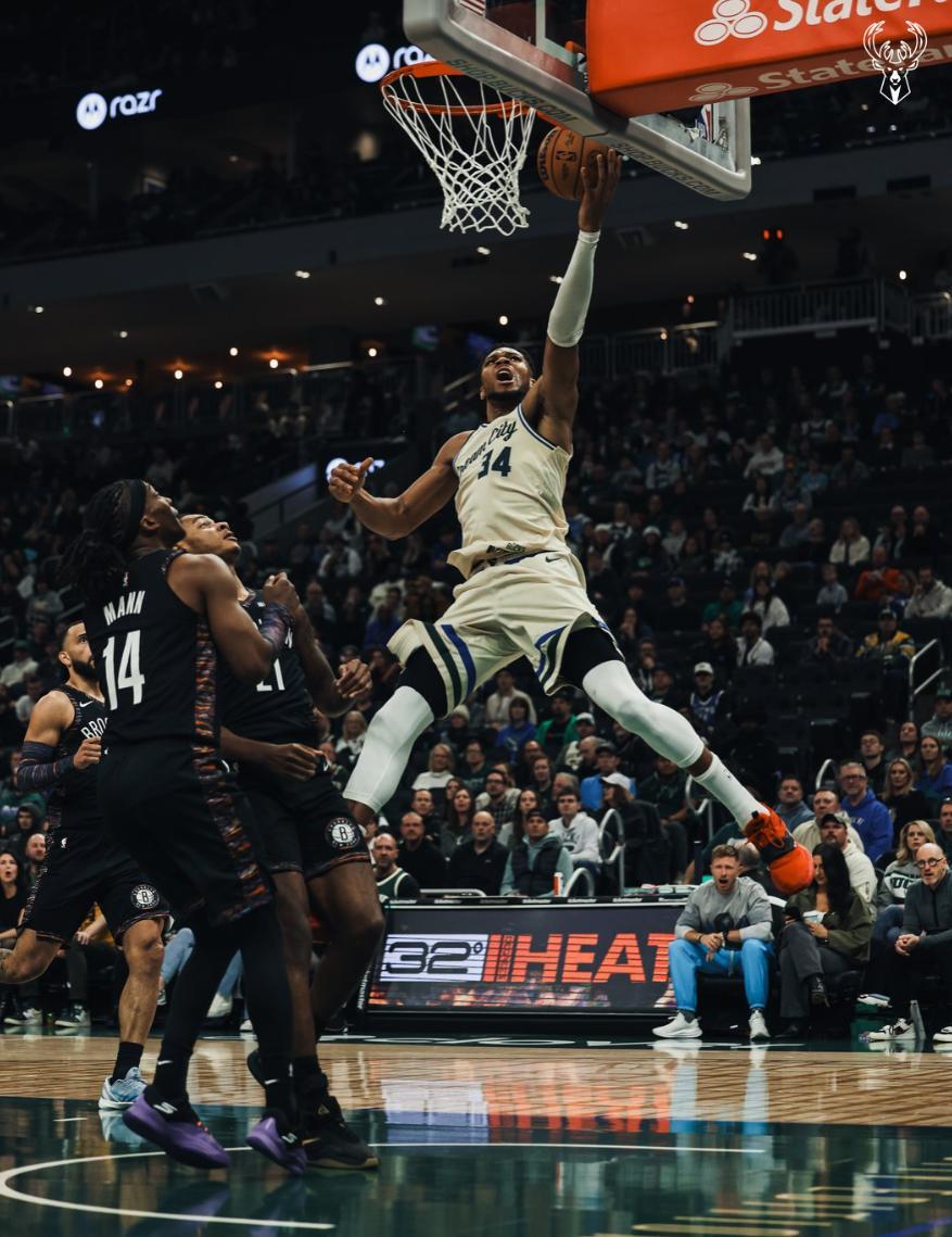 此役是揚尼斯傷愈復出的第二場,也是背靠背的第二場,昨夜他不足30分鐘拿到30+,此役上半場10中8,拿到18分5籃板1助攻2搶斷,命中率80%。