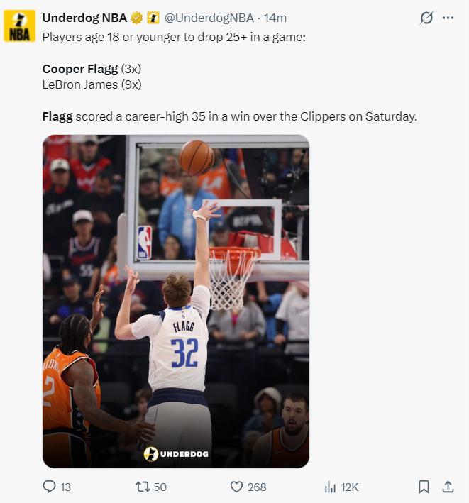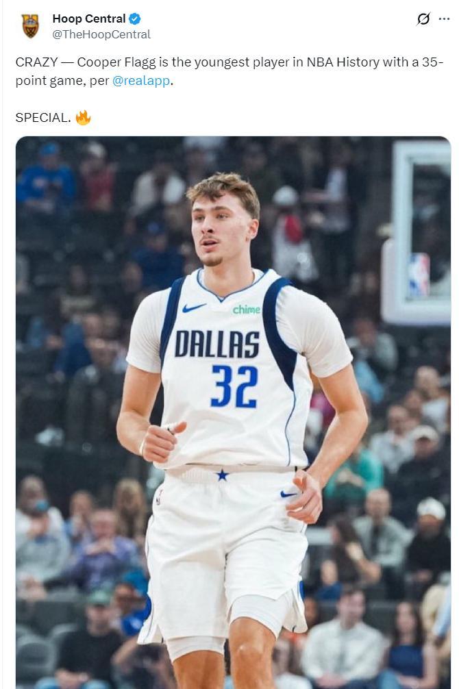 美媒HC寫道:瘋狂一戰,弗拉格剛剛成爲NBA歷史上最年輕的單場35+先生!