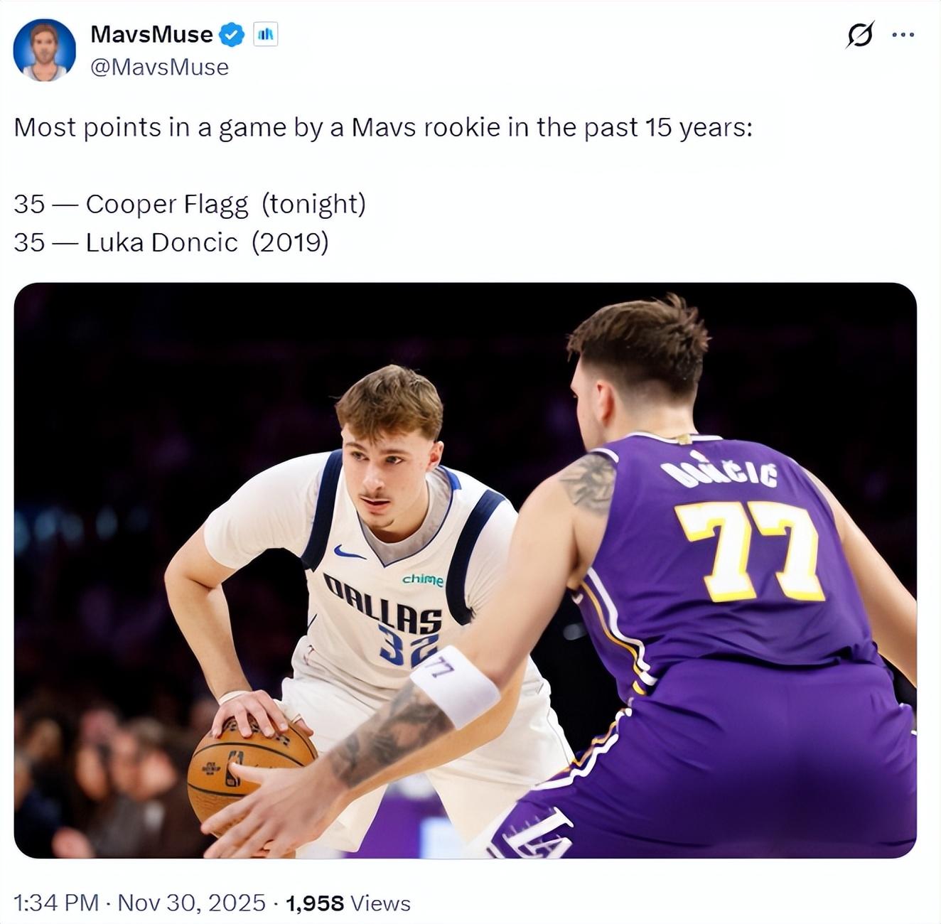 6.過去15年,獨行俠隊史新秀拿35+的球員只有弗拉格、東契奇;