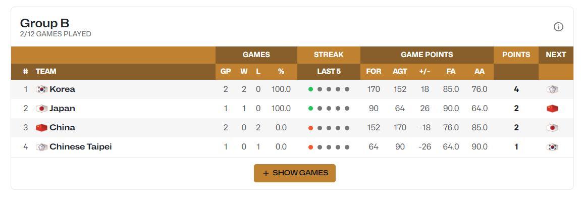 但有一說一,FIBA官方這個亞太區世預賽實力榜摻水太嚴重,男籃排第三被排第七的韓國吊打,排在第九的日本是碾壓第五第一場比賽的中國臺北(第二場兩隊正在進行中)。