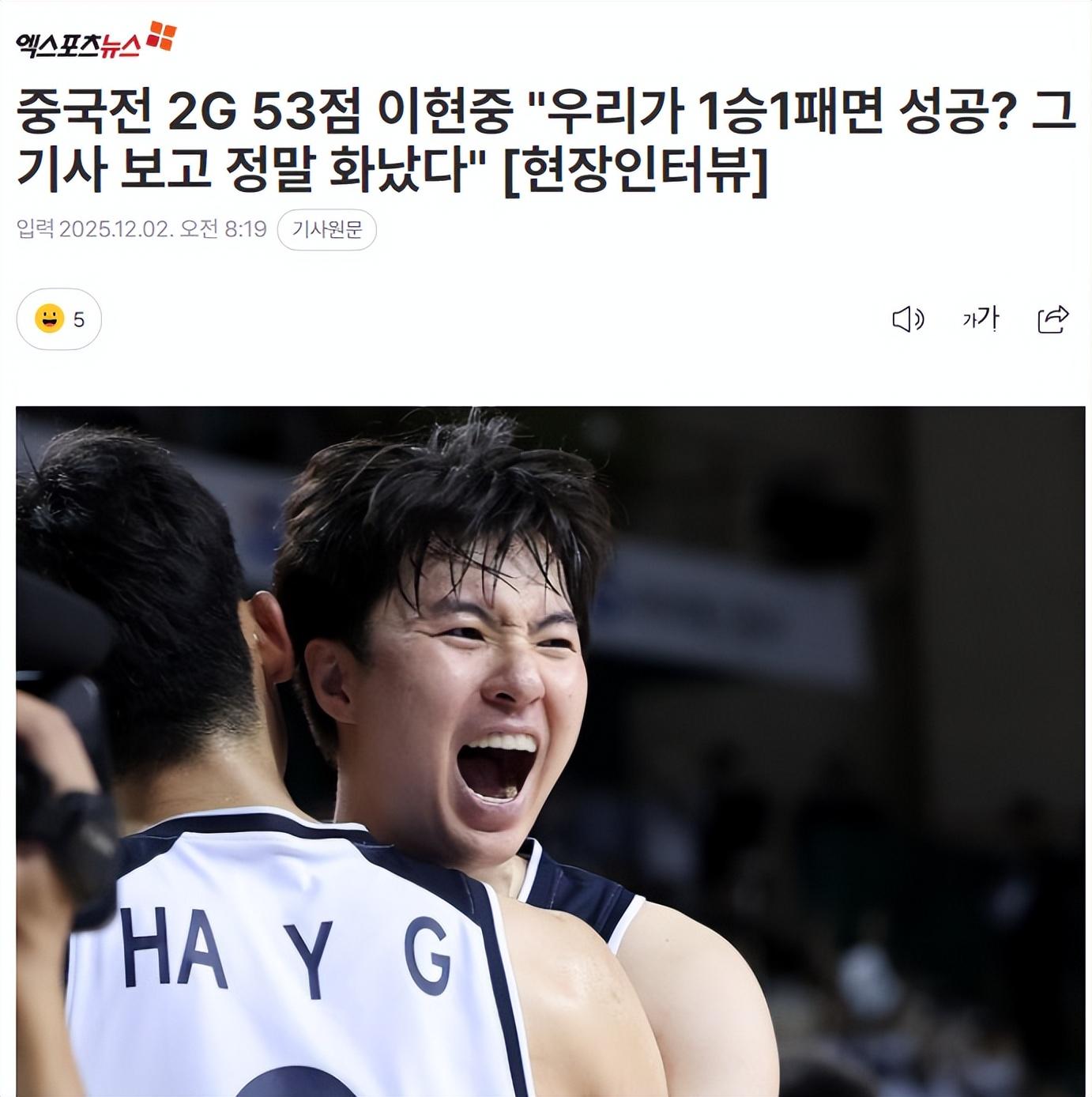 北京時間12月2日,韓國媒體《世博新聞》撰寫長文,文中寫道:韓國男籃自2013年後首次連勝中國男籃,李賢重回應了此前的質疑。
