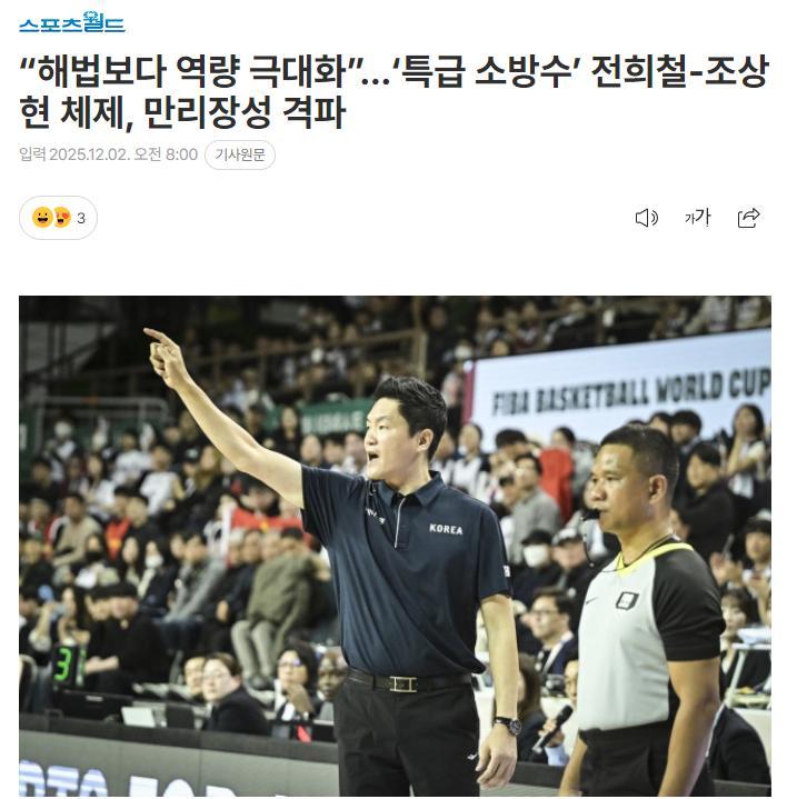 韓國媒體也盛讚了韓國男籃的臨時主教練全熙哲,用李政炫的話來說他將所有人的能力都發揮到極致,或許戰術、體系方面沒有太大的改變,可球隊的凝聚力、拼勁、求勝欲跟亞洲盃已經明顯不同。