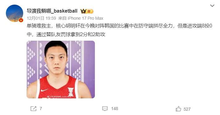 導演更是對胡明軒進行了冷嘲熱諷,說他8中0單騎難救主。