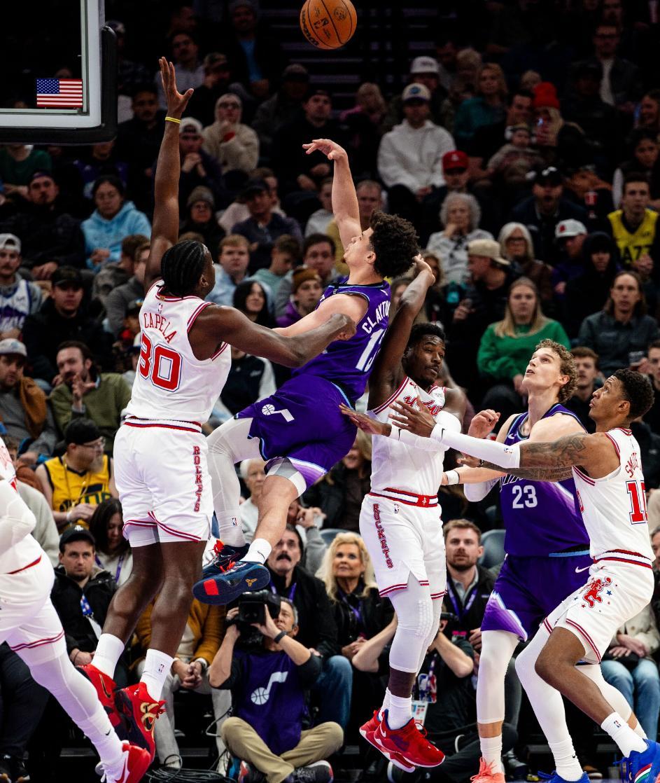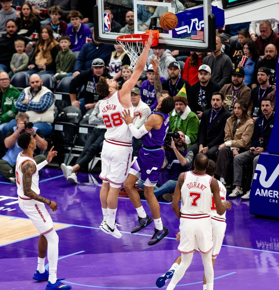 末節,貝利、克萊頓連中三分,KD回應一個三分,申京拋投命中,申京籃下再度命中縮小到5分。克萊頓失誤後直接撂倒杜蘭特,爵士已經5次直接送罰球,杜蘭特三分命中縮小到只差1分,但爵士立馬連續命中兩個三分再度拉開到7分,40秒內裁判吹了火箭4次犯規,杜蘭特拼了連續突破造犯規,阿門致命失誤,喬治4罰全中,申京搶了一個兩分,火箭犯規戰術比賽走向完結。