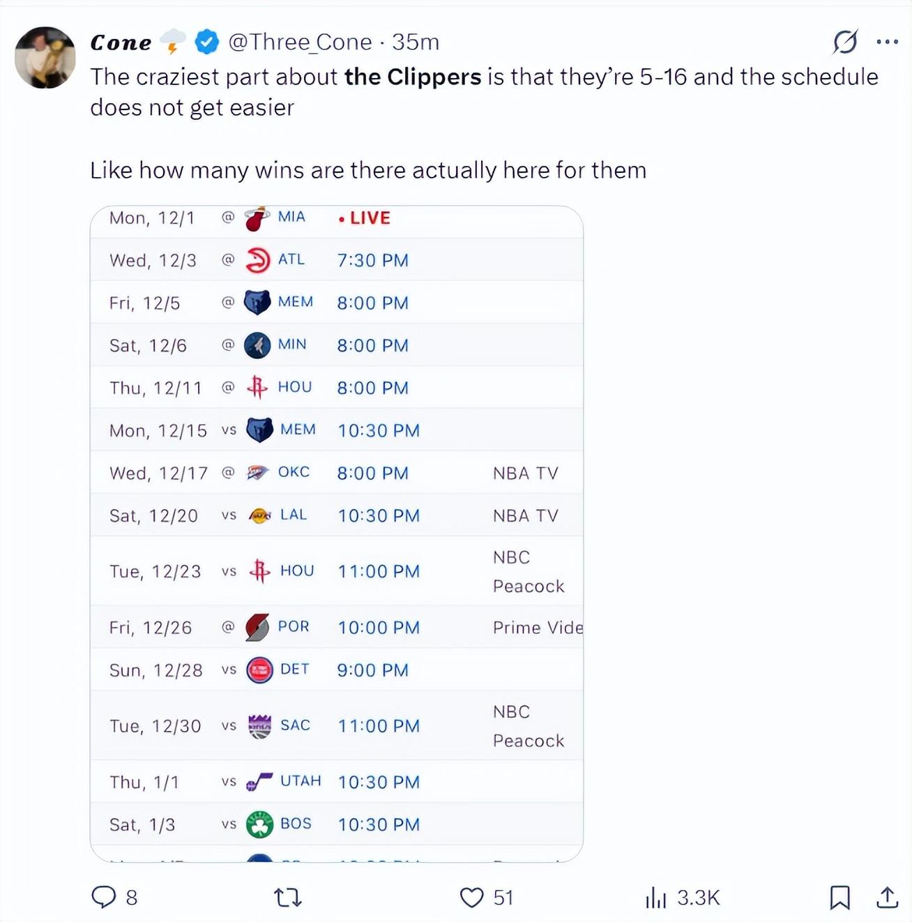 美媒曬出快船接下來的賽程,老鷹、灰熊、森林、火箭、灰熊、雷霆、湖人、火箭,快船的賽程也非常艱難,快船到底能拿多少勝利呢?