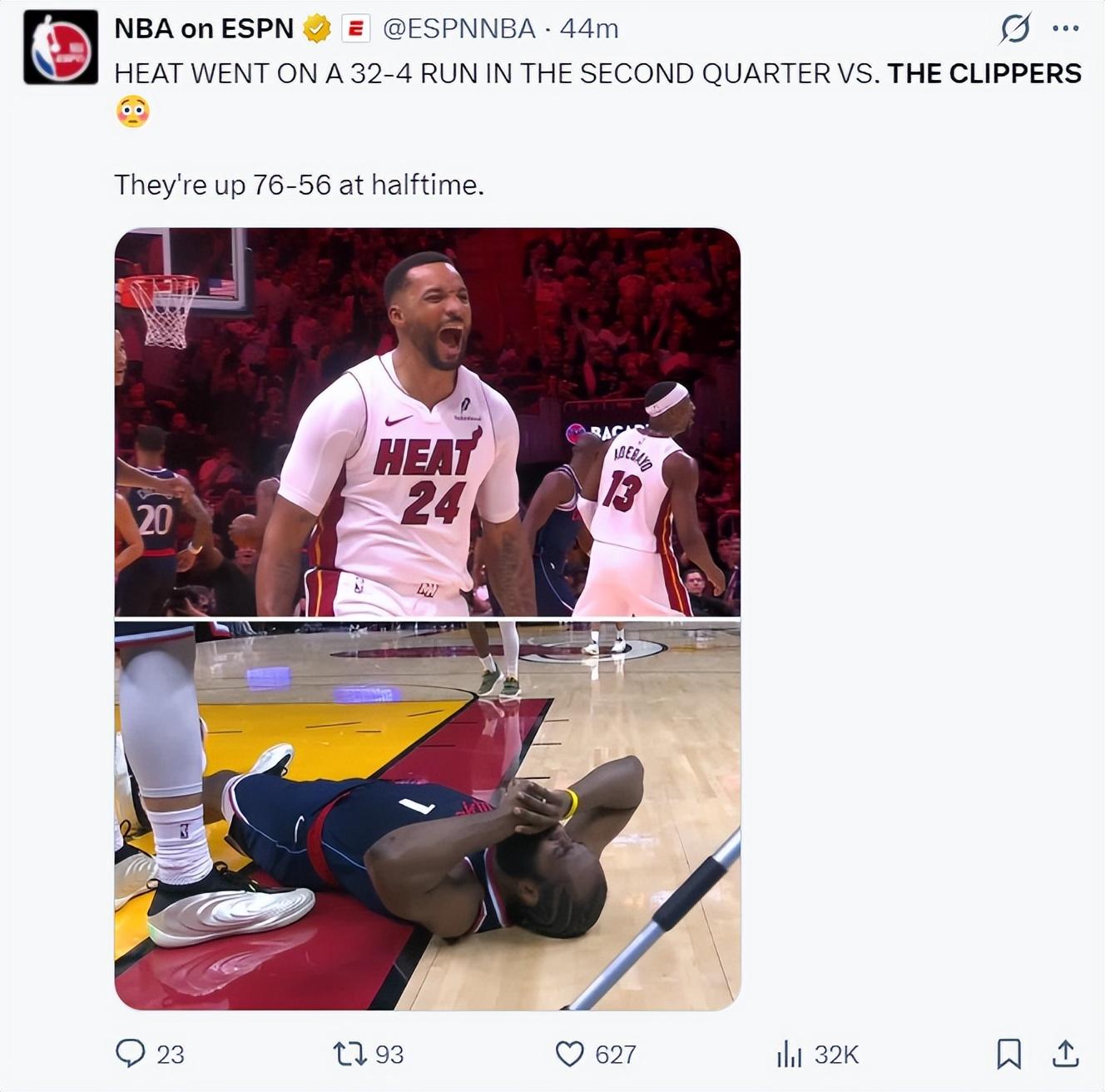 快船也直接登上了全美體育熱搜,因爲第二節快船被熱火打出一波30-2的攻防浪潮,泰倫盧的暫停根本沒能改變什麼,感覺泰倫盧對球隊更衣室的控制力已經非常低下。