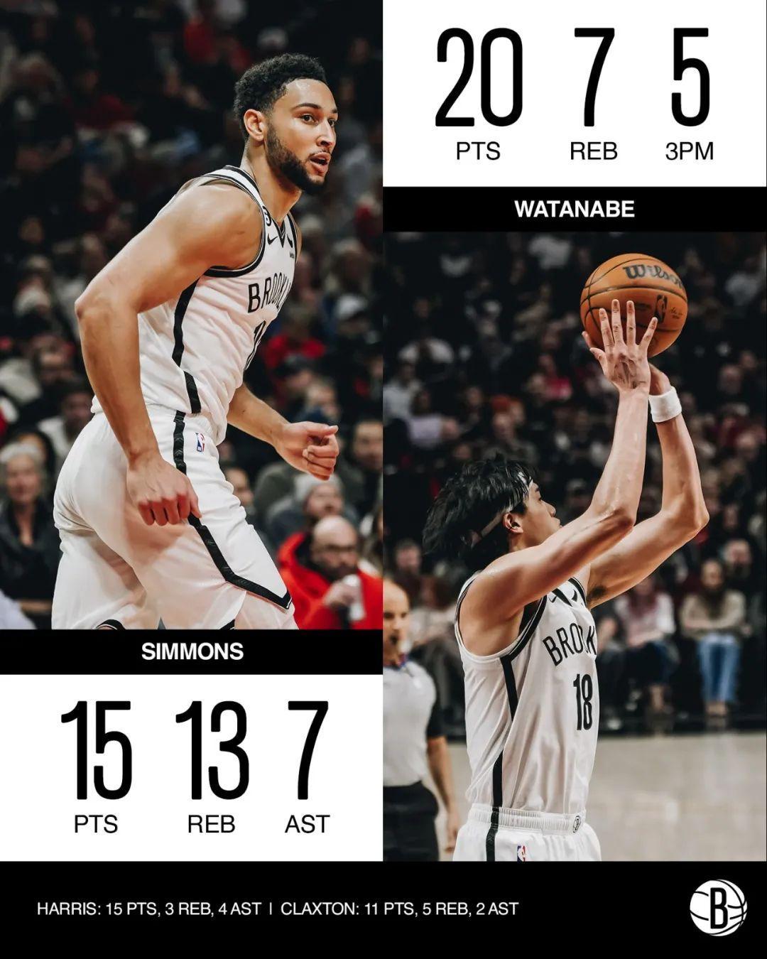 此役,相較於杜蘭特平平無奇的35分;渡邊雄太投中5記三分得到20分;羅伊斯·奧尼爾生涯首次的三雙和絕殺,本·西蒙斯的爆發更能讓籃網隊興奮。