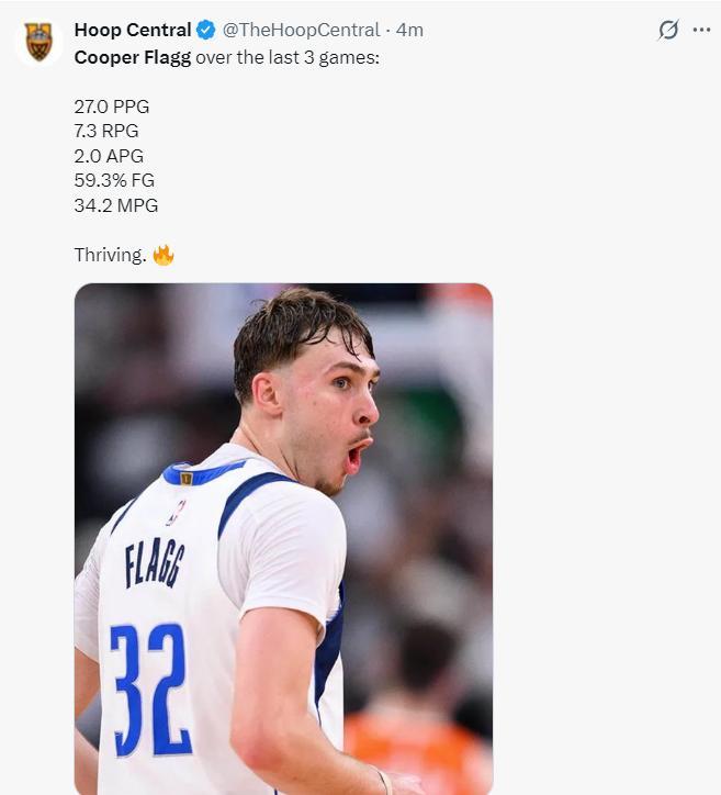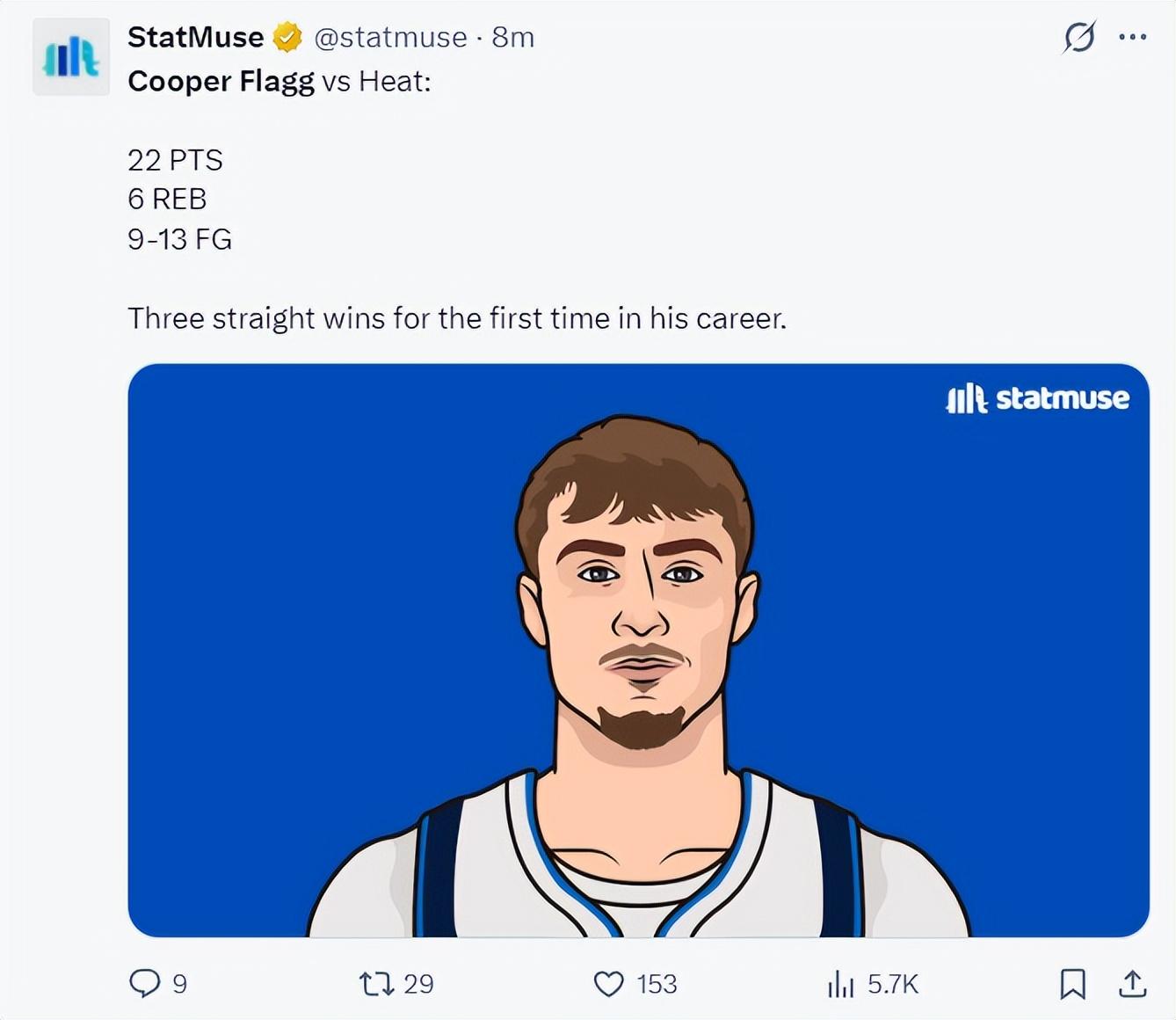 獨行俠此役全隊7人上雙,發揮最高效的是弗拉格,他移動打三號位後明顯更高效,31分鐘,13中9,發5中4拿到22分6籃板2助攻1搶斷1蓋帽,命中率69.2%,美中不足是有4個失誤,但中距離與突破的信心明顯不同了。