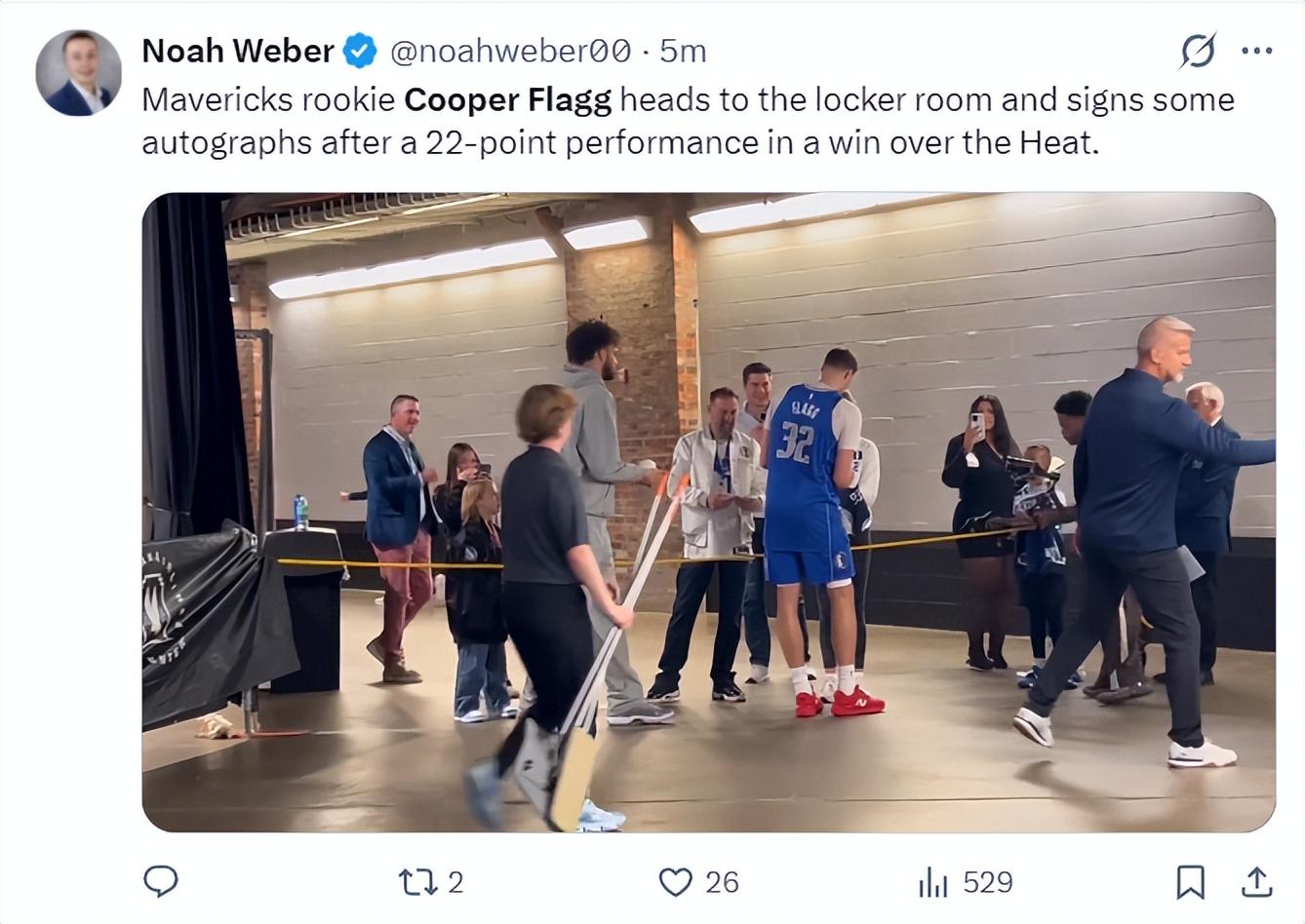 賽後弗拉格非常的開心,他進入更衣室時蹦蹦跳跳的,這位18歲的少年已經是全球最高籃球殿堂的小明星,很多球迷在球員通道等待他的簽名,他爲多位等待的球迷都進行了簽名,弗拉格開竅後獨行俠的戰績迅速提升。