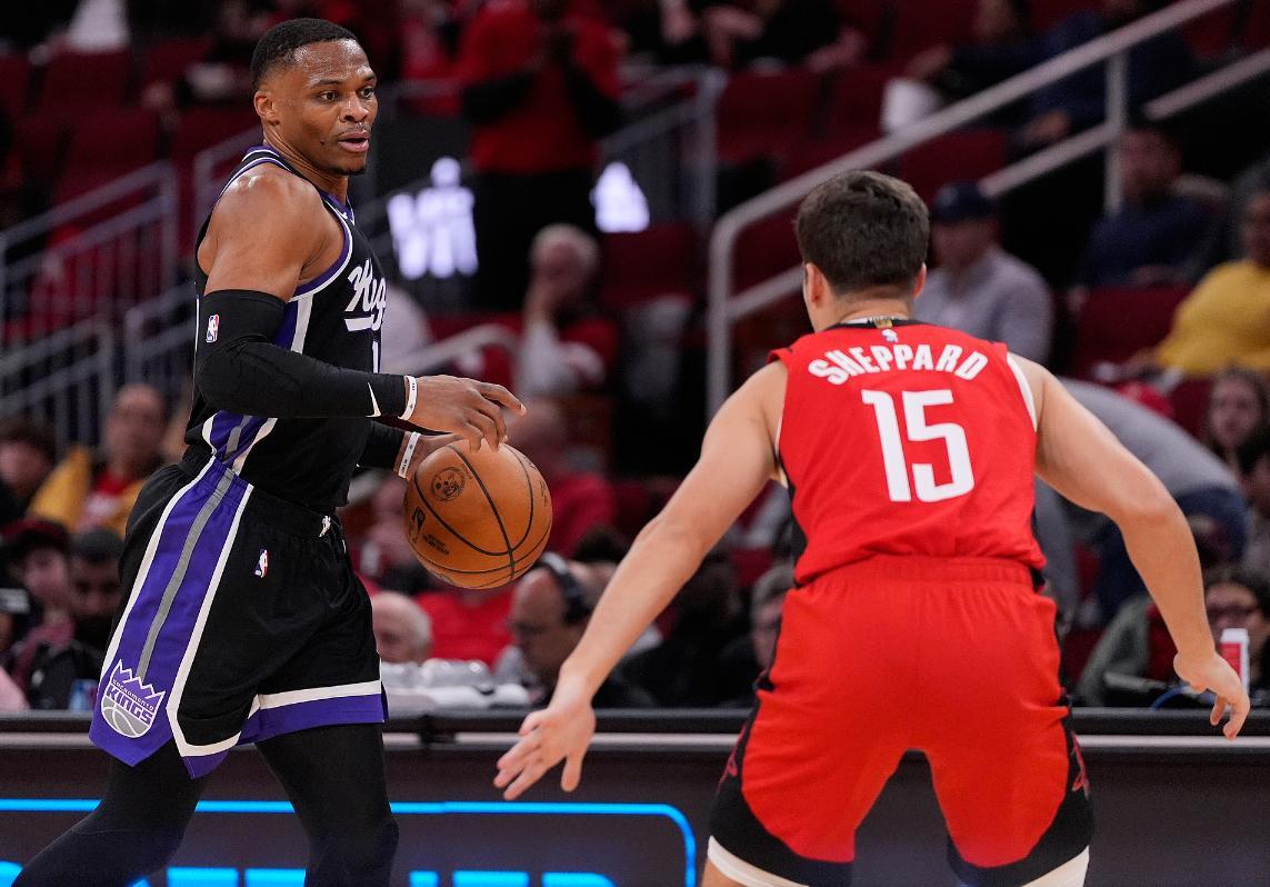 國王記者爲威少喝彩,國王官方也曬出了海報祝賀威少,上半場威少17分鐘,7中3,三分4中2,拿到8分2籃板5助攻,火箭的策略還是放他投籃,但威少把握住了兩個外線三分空位。