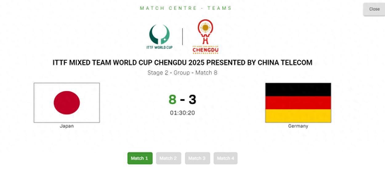 北京時間12月4日,成都混合團體世界盃第二階段,日本隊8-3擊敗德國隊拿到五連勝,日本隊繼續穩定第二的位置。雖然日本隊此役是大比分取勝,但四盤對決,日乒22歲的一哥張本智和實際上是輸球的,張本智和1-2不敵邱黨。