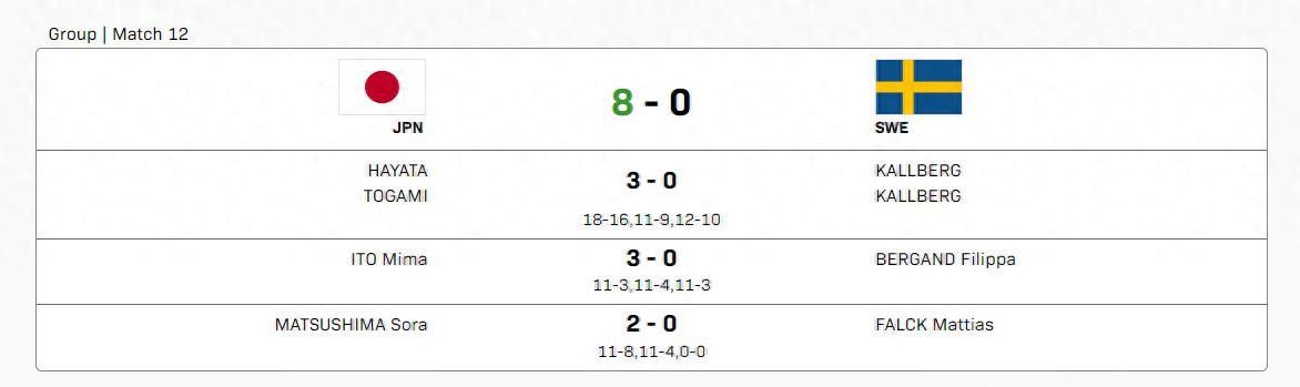 這場比賽只打了三盤日乒就拿到勝利,三盤具體比分: