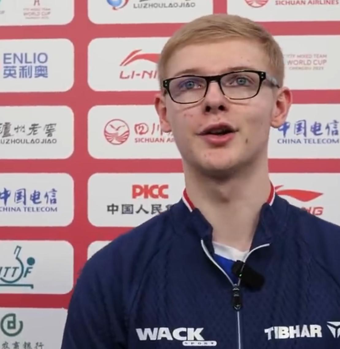 在成都混合團體世界盃第二階段,中國隊VS法國隊的比賽中,梁靖崑作爲單打選手吞下了中國隊的首場失利,他1-2不敵費利克斯-勒布倫,三局比分:【11-6,11-13,7-11】。
