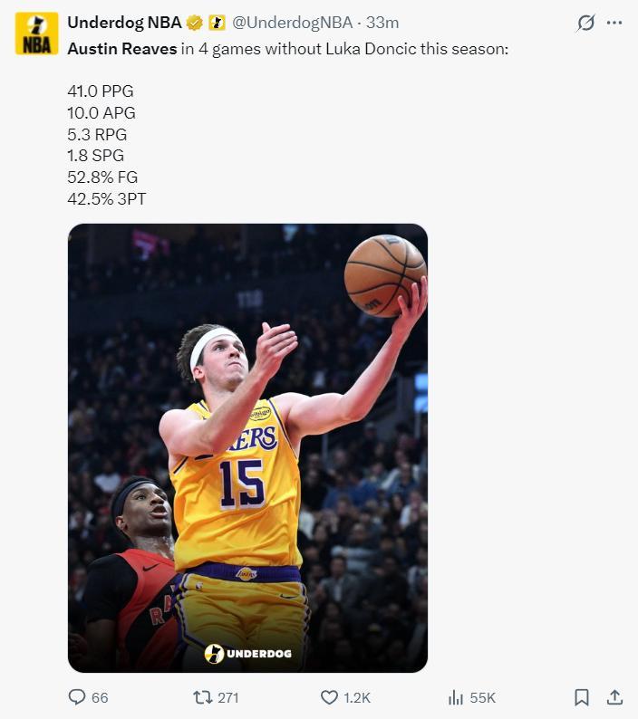 本賽季東契奇缺席的四場比賽,裏夫斯場均41分10助攻5.3籃板1.8搶斷,命中率52.8%,三分命中率42.5%,他完全可以當一支球隊的第一核心,他個人進攻能力完全沒有問題。
