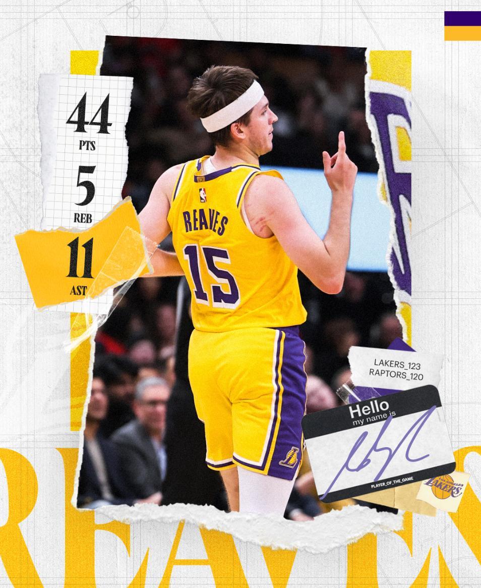 湖人123-120險勝猛龍,勒布朗-詹姆斯犧牲自己延續1297場的上雙紀錄助攻八村壘完成三分絕殺,八村壘、詹姆斯成爲贏球的英雄,但實際上能打到這一刻完完全全是依賴奧斯汀-裏夫斯。