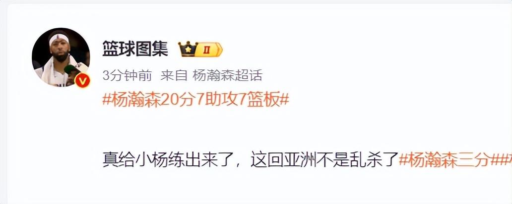 博主表示,開局楊瀚森打的很好,但隨着比賽的深入體能就下來了,攻防效率就一同下來。