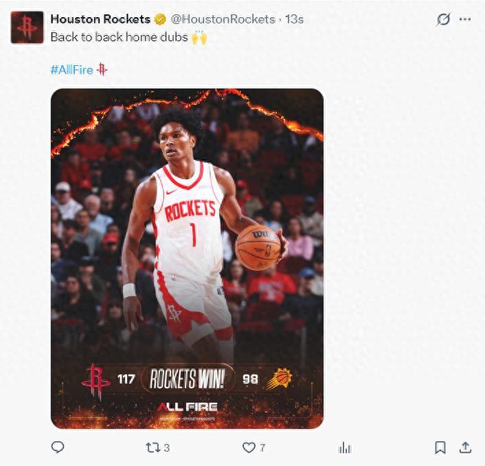 北京時間12月6日,火箭117-98狂勝太陽拿到二連勝,過去的10場比賽火箭隊贏下了其中的八場。此役火箭還是逆轉取勝,首節打完火箭是落後的,但第二節44-27直接打崩了太陽隊,兩隊的分差一度拉開到30+。