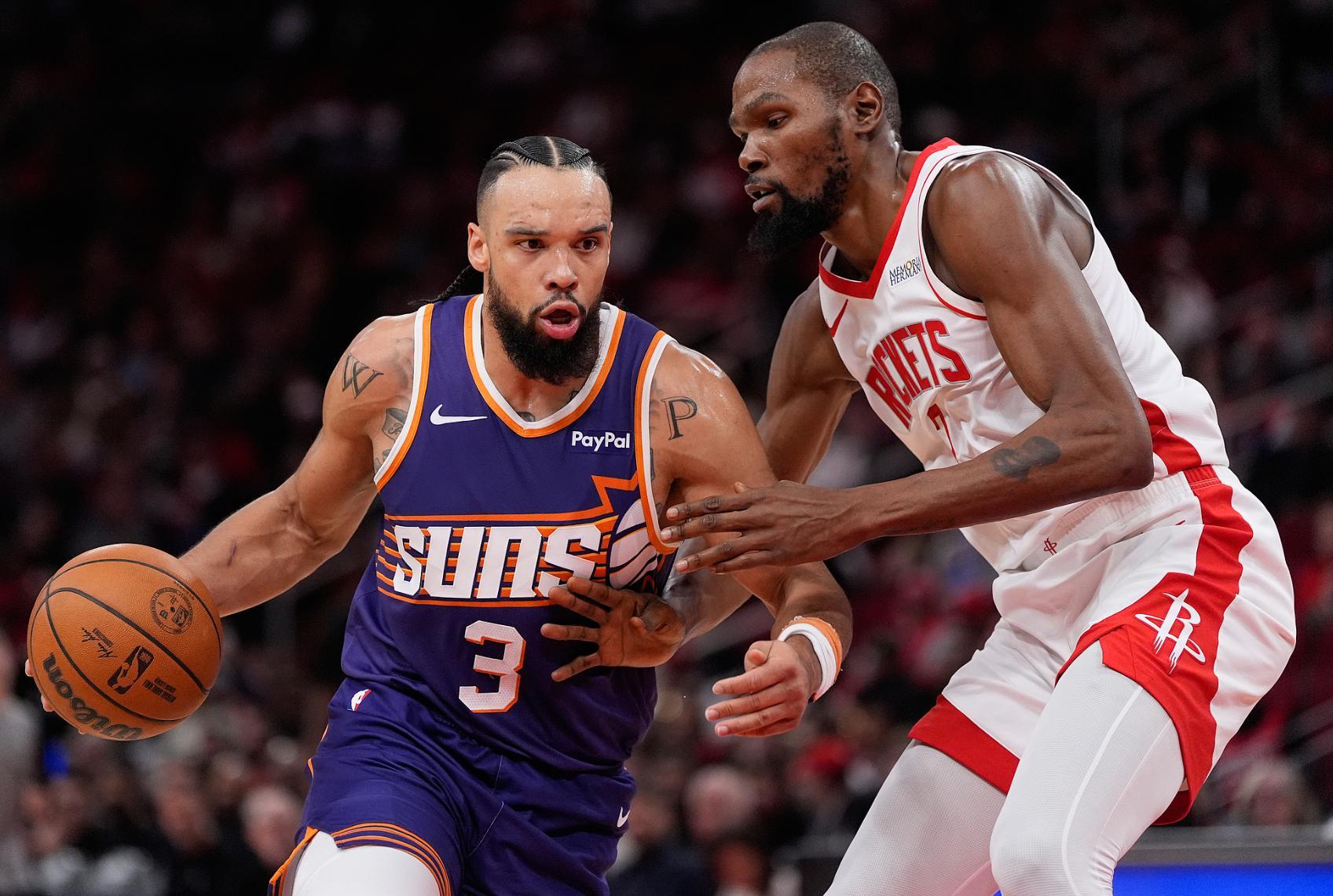 這場比賽火箭的核心申京因病缺席,太陽這邊布克也因傷繼續缺席。