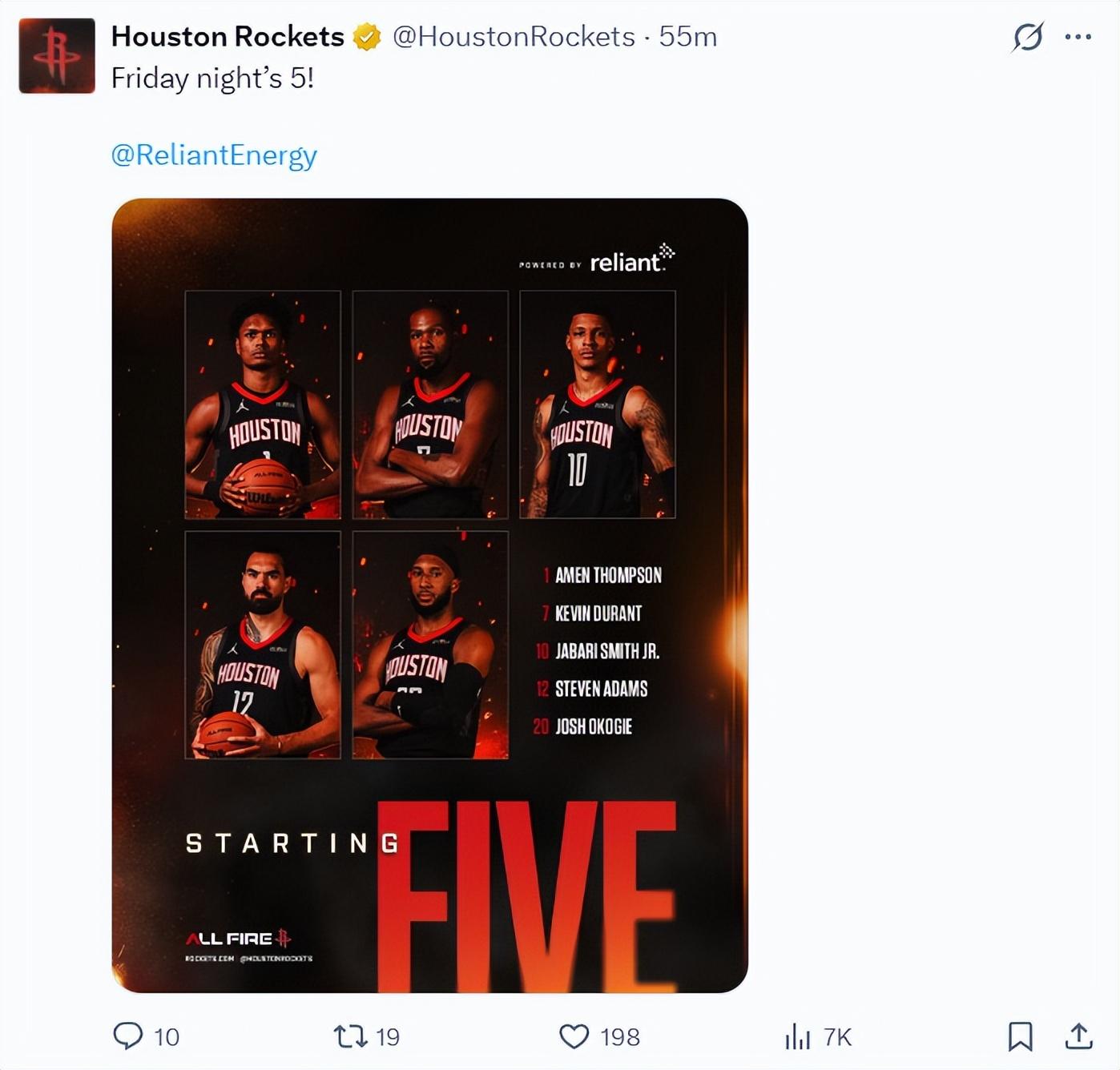 火箭:奧科吉、阿門、杜蘭特、史密斯、亞當斯;