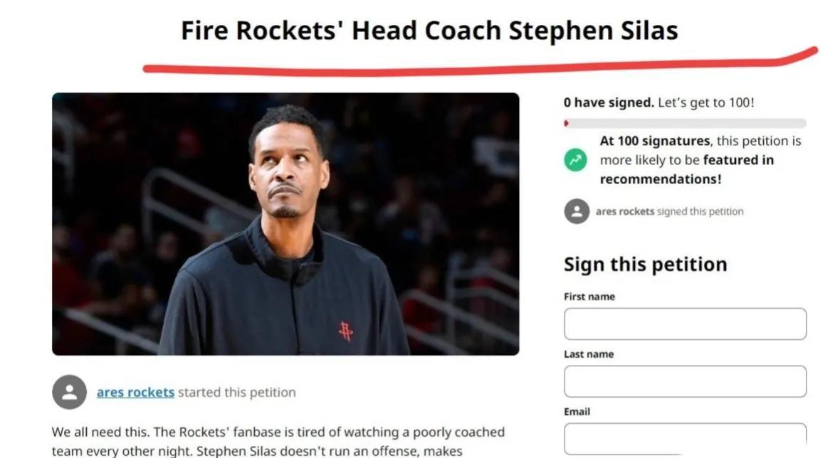 火箭主場被步行者20分逆轉輸掉比賽,休斯頓的火箭球迷發起倡議,希望火箭隊主帥塞拉斯趕緊下課,塞拉斯教練毫無作爲,即使得到再多的潛力新人,火箭也難以形成競爭力。