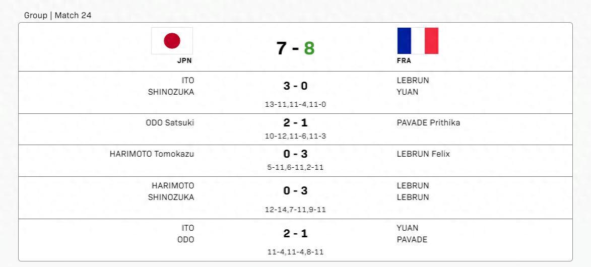 這場比賽22歲的張本智和出戰了兩盤比賽,第三盤男單張本智和0-3慘敗F-勒布倫,三局比分:5-11、6-11、2-11,可以說張本智和被F勒布倫給打爆了,張本智和毫無還手之力。