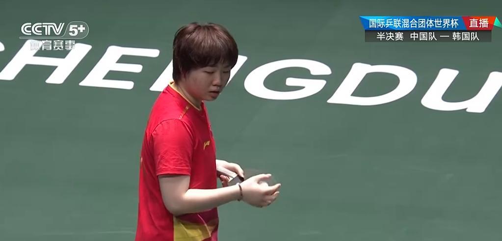 第二局開場金娜英直接5-1領先,場下的王藝迪顯得非常的無奈,王藝迪直到第二階段的最後一場才獲得登場機會,在國乒已經提前一輪鎖定頭名才讓她出戰,這說明教練組不夠信任她,可蒯曼3-7落後,王藝迪一臉的沮喪,金娜英8-3繼續領先,蒯曼追到5-8韓國隊暫停,韓國隊暫停後蒯曼連續得分完成11-8大逆轉。