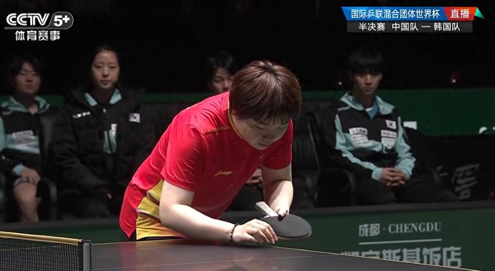 北京時間12月7日,成都混合團體世界盃半決賽,中國隊VS韓國隊,中國隊第二盤是蒯曼出戰,韓國隊第二盤是金娜英出戰,最終蒯曼在大比分0-1落後的情況下2-1擊敗金娜英,國乒完成連勝大比分5-1領先,蒯曼拿下勝利後怒吼發泄。