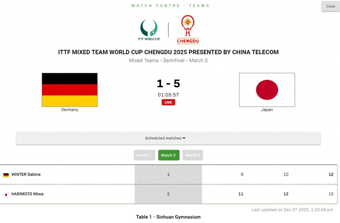 北京時間12月7日,成都混合團體世界盃半決賽,日本隊VS德國隊,第二盤張本美和VS莎賓-溫特,因爲日乒第一盤已經取勝,第二盤女單的張本美和實際上沒有壓力,而且張本美和是日乒一姐實力雄厚,最終17歲的張本美和2-1溫特。