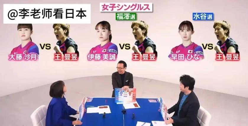 在混團世界盃之前,日乒幾位專家就分析過王曼昱是日乒的夢魘,福澤朗、水谷隼都覺得王曼昱是懸在日乒頭上的利劍,不管日乒出什麼組合都打不過王曼昱,因爲自2019年12月王曼昱輸給伊藤美誠後她已經面對日乒6年不敗。