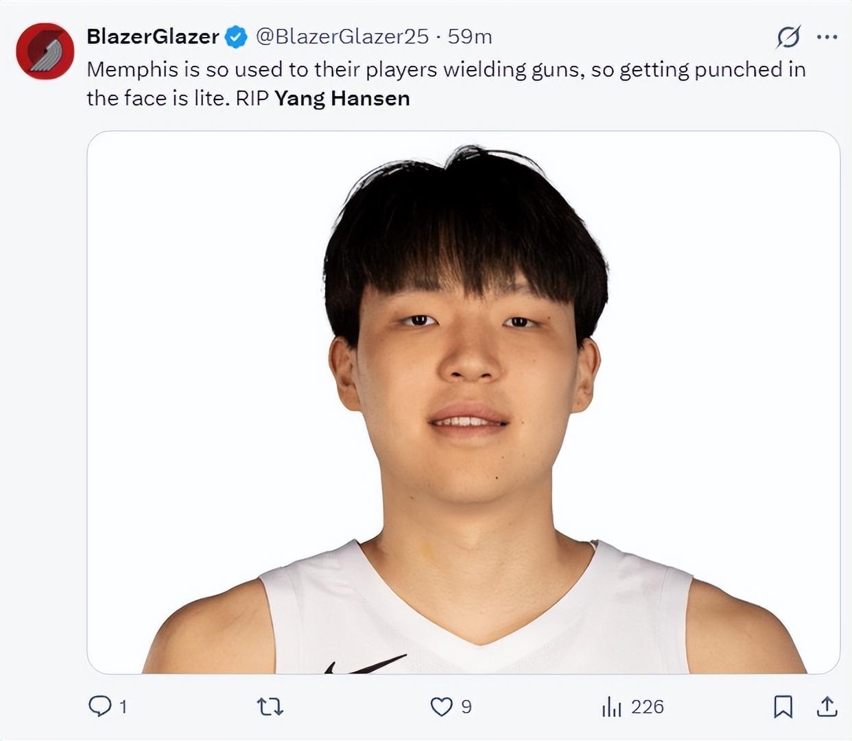 開拓者媒體:灰熊的球員們早已習慣了用這些武器,擊中對方的面部對他們來說簡直不算什麼,RIP楊瀚森。
