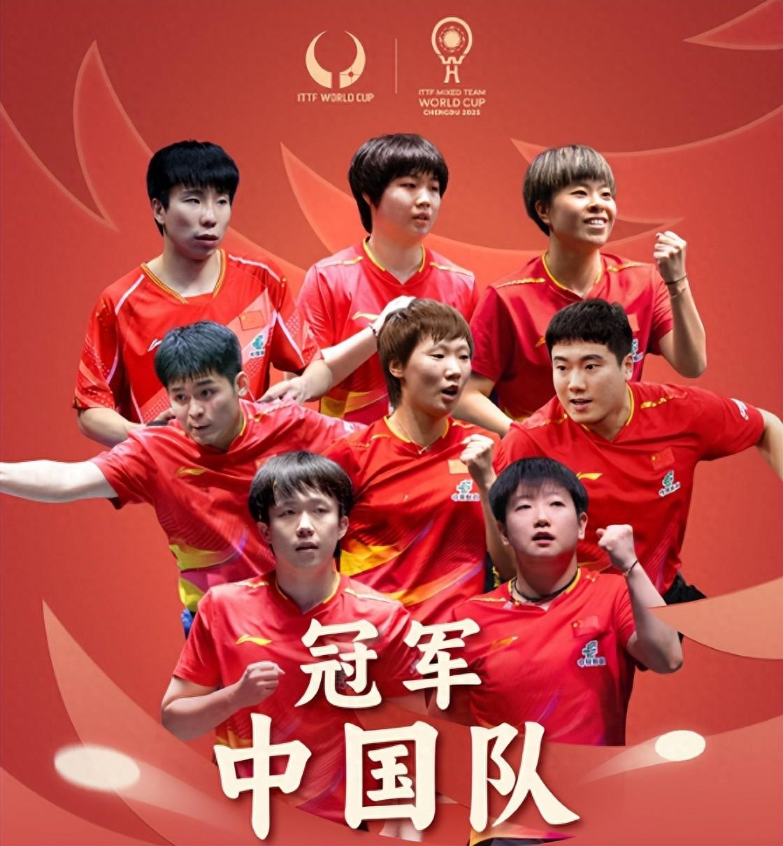 這支混合團體世界盃男女隊各自單打的排名都挺高,除了24歲的徐瑛彬,他目前在WTT的排名是104位,他的出現顯得非常突兀,他跟這支國乒的硬實力差距實在是太大,他是完完全全的躺着拿到世界冠軍。