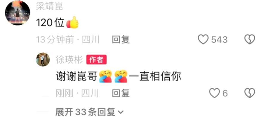 徐瑛彬發佈自己的社媒後,閆安:新的起點,再接再厲。