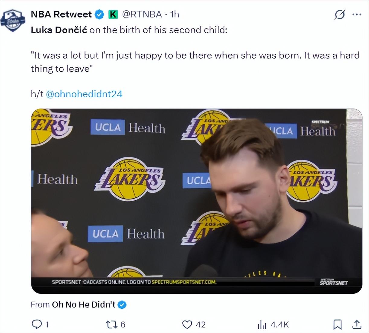 盧卡-東契奇此役復出了,他在賽前談到自己第二個孩子的出生:很高興能在她出生時陪伴在她的身邊,從她身邊離開是一件非常不容易的事情。