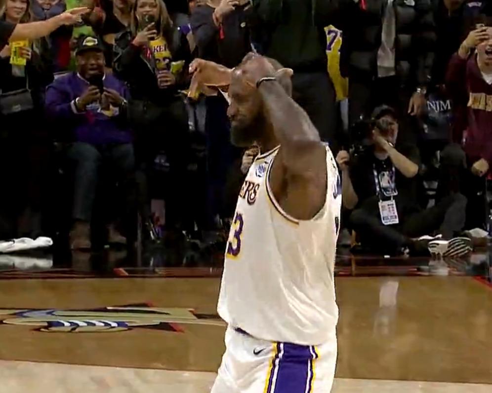 末節連拿7分幫助湖人打停費城時,勒布朗爲自己戴上了皇冠,要知道他還有20多天就41歲了。