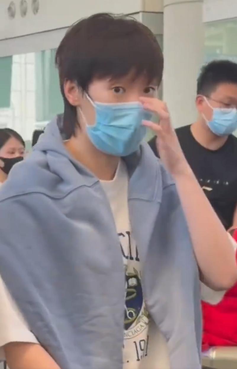 很快孫穎莎也脫掉了外套就穿一個白色T恤朝着機場外走去。