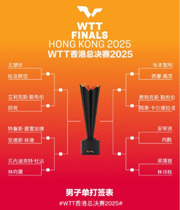 北京時間12月8日,WTT香港總決賽的抽籤儀式結束,男單的籤位很有看點,梁靖崑首輪戰林詩棟,王楚欽要獨守一個半區,下半區國乒三人呢,上半場只有王楚欽一人,張本智和也在下半區,他首輪的對手是西蒙-高茨。